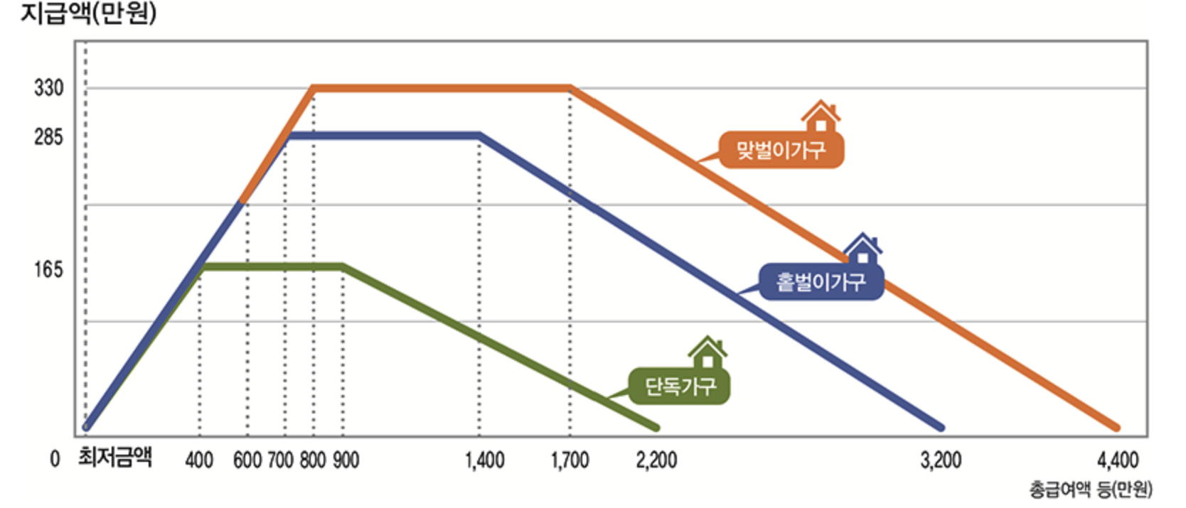 - 맞벌이 가구: 연간 총소득 4,400만 원 미만